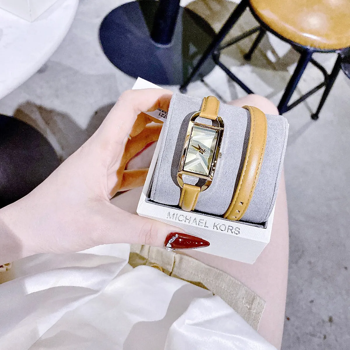 With Gold dial , Featured with Double Wrap Genuine Leather Strap , MK Logo dial
