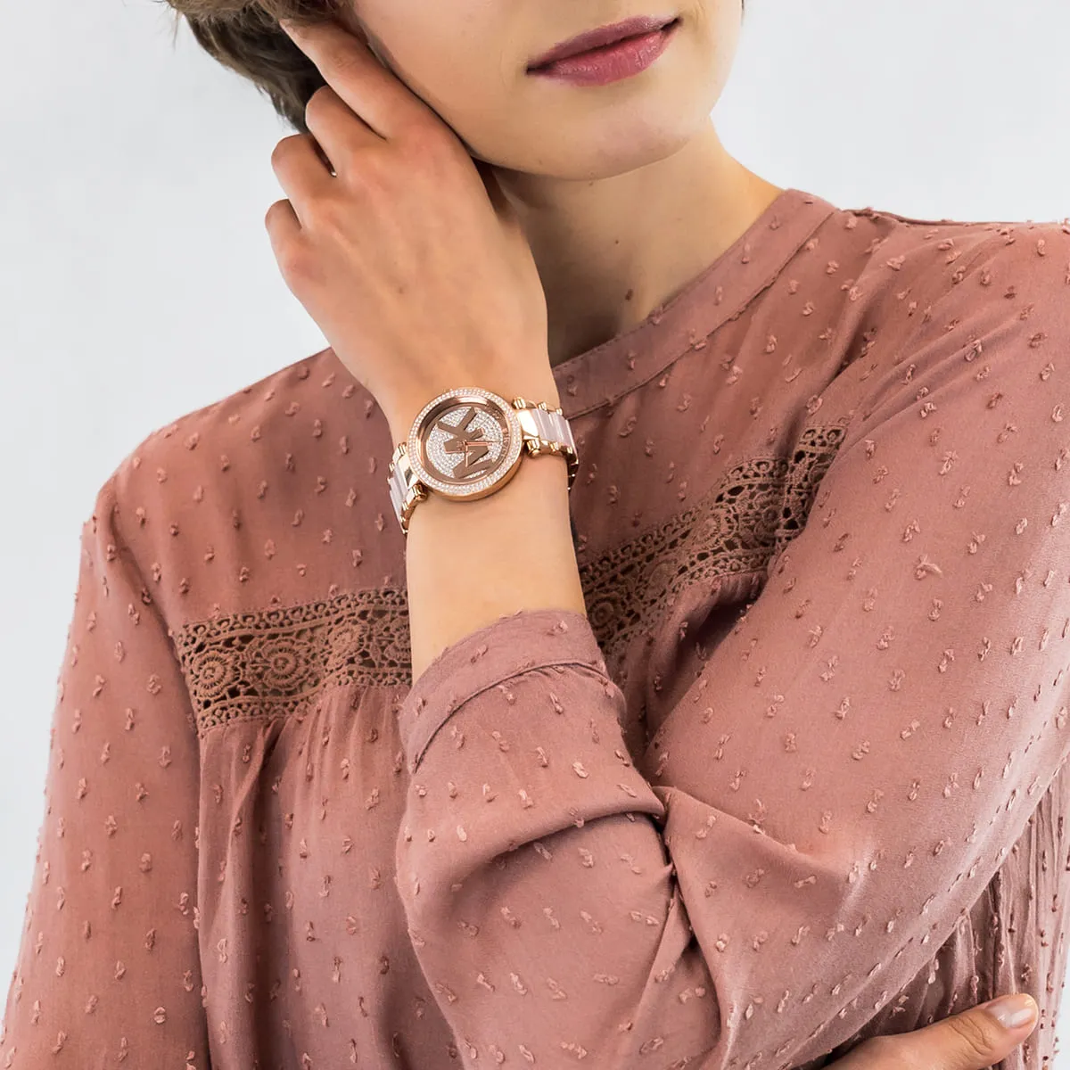 With Rose Gold dial , Featured with MK Logo dial and Crystals decorated